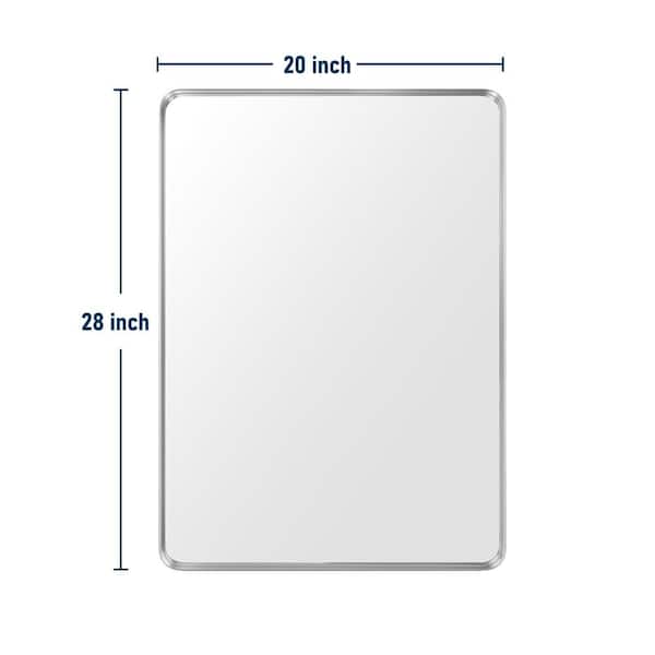 20 in. W x 28 in. H Medium Rectangular Metal Framed Wall Mounted Wall Bathroom Mirrors Bathroom Vanity Mirror in Silver