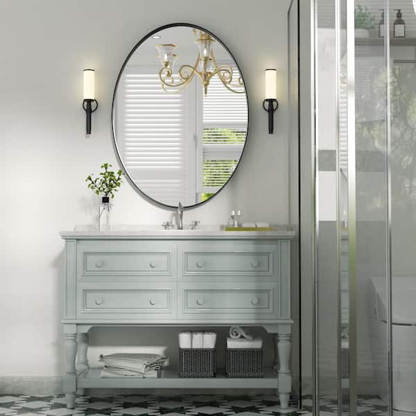 22 in. W x 30 in. H Medium Oval Mirrors Metal Framed Wall Mirrors Bathroom Vanity Mirror Decorative Mirror in Black
