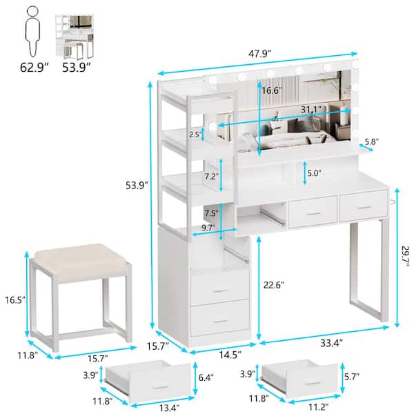 White Makeup Vanity Table With Mirror, Charging Station, Vanity Table With 2 Glass Cabinets With RGB Lights