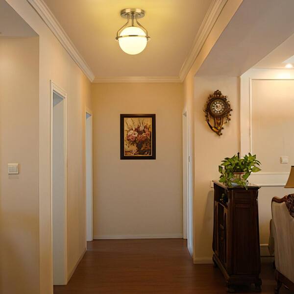10 in. 1-Light Gold Semi-Flush Mount Ceiling Light Fixture with Milky Glass Globe Shade