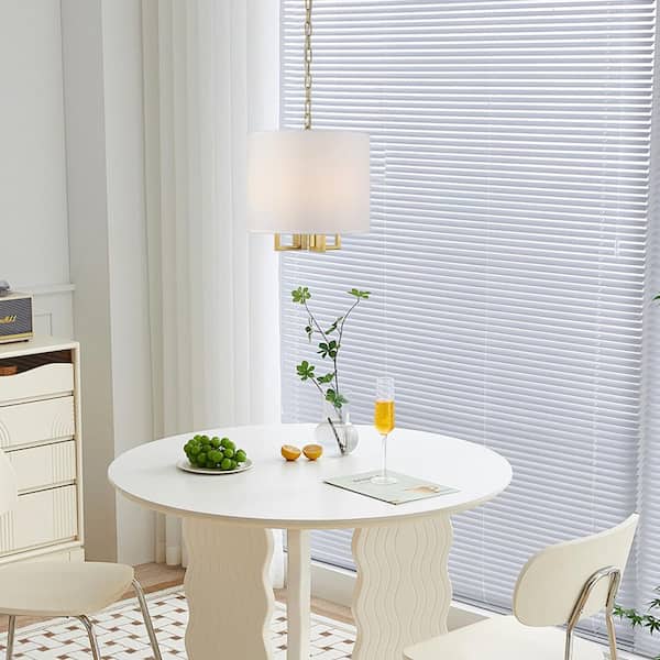 4-Light Gold Drum Chandelier with White Fabric Shade for Kitchen Island Dining Room