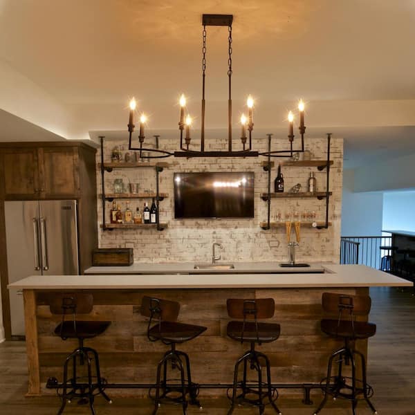 Industrial 8-Light Black Linear Classic-Candle-Style Chandelier for Kitchen Island with No Bulbs Included