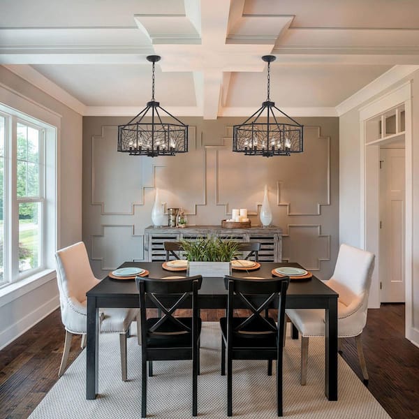 Industrial Farmhouse 8-Light Black Candlestick Geometric Chandelier with Metal Cage Shade