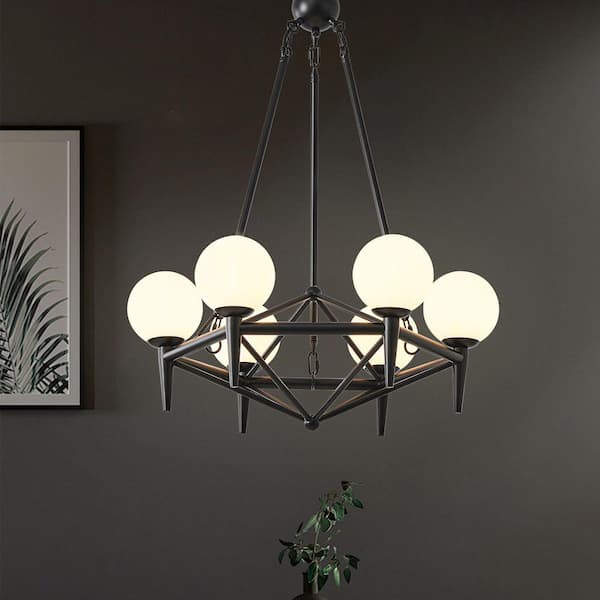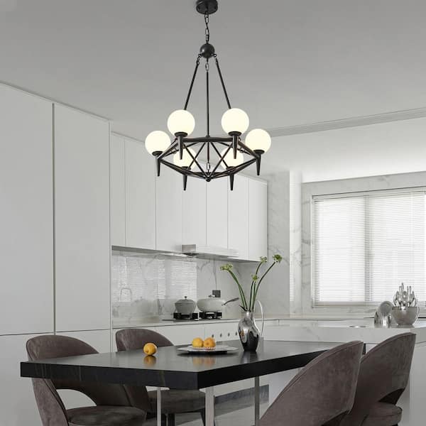 Modern 23.6 in. 6-Light Black Sputnik Chandelier with Globe Frosted Glass Shade