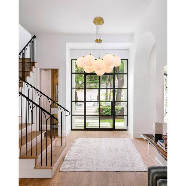 Modern 25.6 in 13-Light Gold Bubble Chandelier with White Globe Shade for Dining Room Living Room
