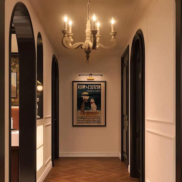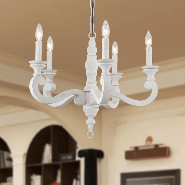 Modern Farmhouse 5 - light French Antique Distressed White Empire Candlestick Wood Chandelier
