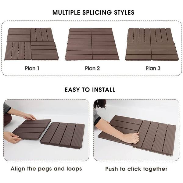 12 in. x 12 in. Patio Tiles Waterproof Plastic Outdoor Interlocking Deck Tiles (44-pack)