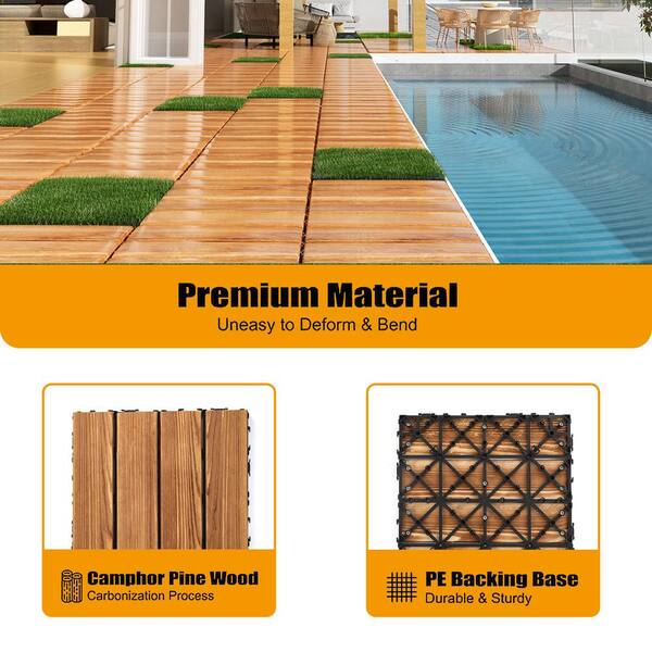 12 in. x 12 in. Square Composite Decking Tiles, Outdoor Interlocking Flooring Tile (Wood 36-Pack/Simulated Lawn 8-Pack)
