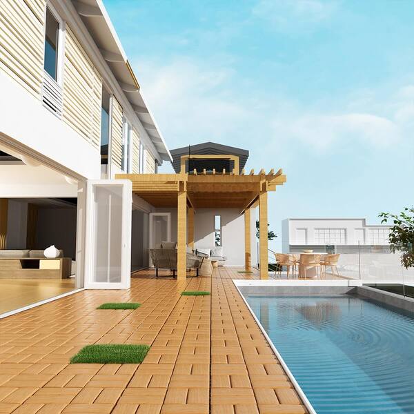 12 in. x 12 in. Square Composite Decking Tiles, Outdoor Interlocking Flooring Tile (Wood 36-Pack/Simulated Lawn 8-Pack)