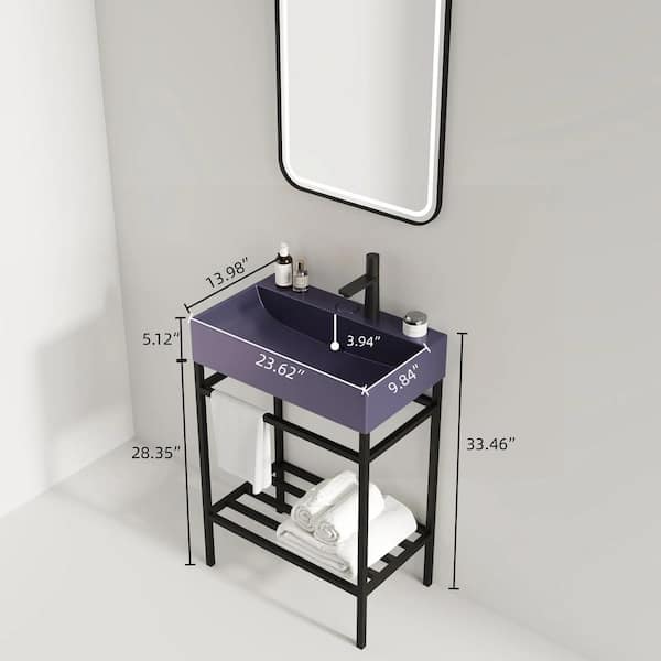 24 in. Freestanding Black Bath Vanity with Purple Ceramic Top