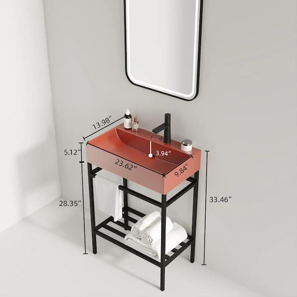 24 in. Freestanding Black Bath Vanity with Red Ceramic Top