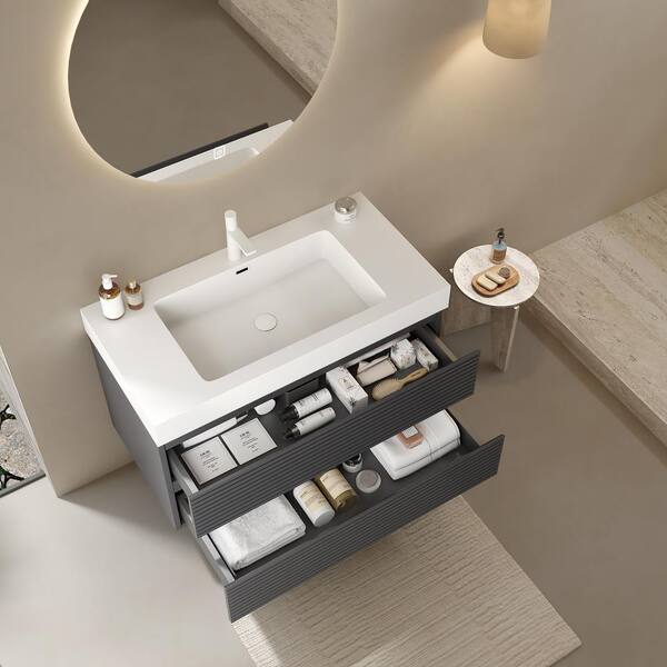 36 in. Floating Gray Bath Vanity with White Acrylic Top and White Acrylic Basin