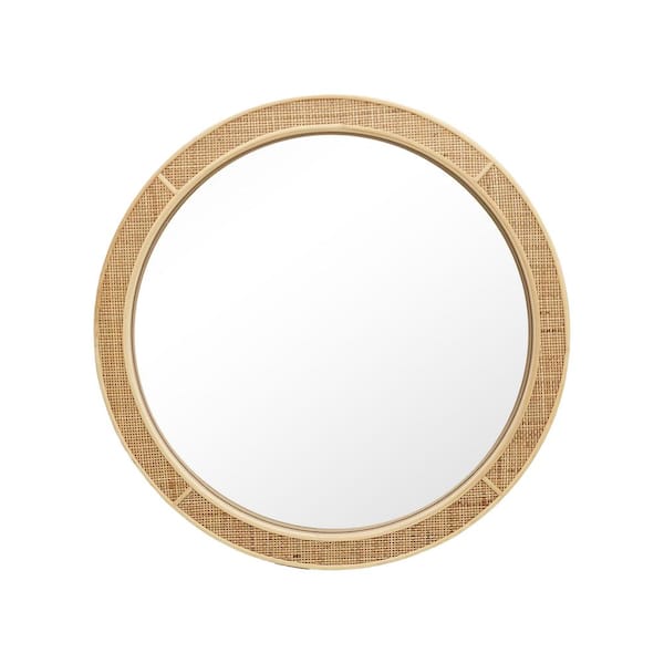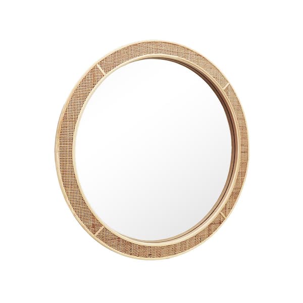 35.5 in. W x 35.5 in. H Round Rattan Framed Light Brown Wall Mirror