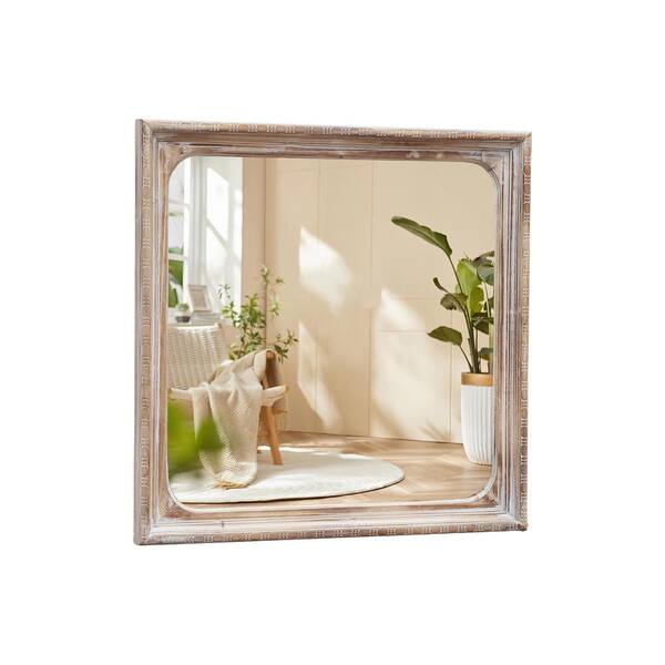 Brown 23.6 in. W x 23.6 in. H Farmhouse Square Wood Framed Mirror