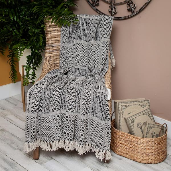 Shelly Transitional Beige 52 in. x 67 in. WOVEN HANDLOOM Throw Blanket