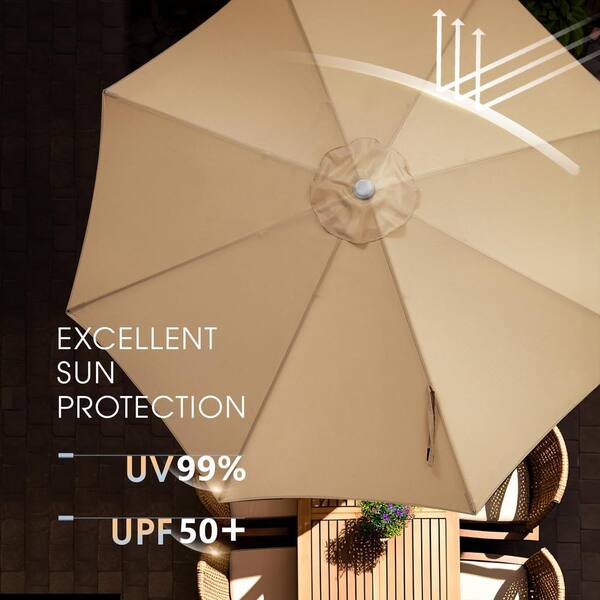 10 ft. Aluminum Outdoor Market Umbrella Patio Umbrella, 5-YEAR Fade-Resistant and Push Button Tilt in Beige