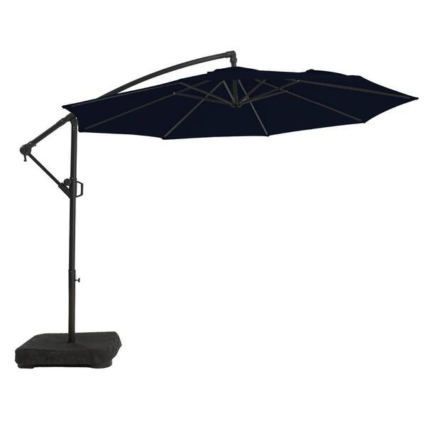 10 ft. Aluminum Patio Offset Umbrella Outdoor Cantilever Umbrella with Crank and Cross Bases in Navy Blue
