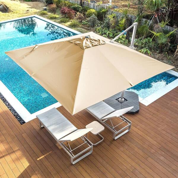 10 ft. Aluminum Squrare Patio Offset Umbrella Cantilever Umbrella, 360° Rotation Device And Cross Base in Beige