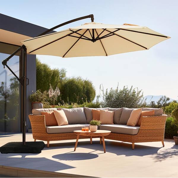 10 ft. Patio Offset Umbrella Outdoor Cantilever Umbrella with Weighted Base Beige