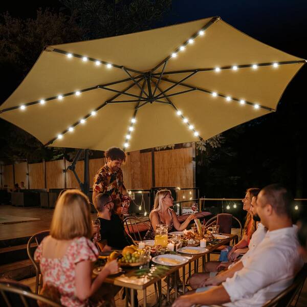 10 ft. Solar LED Patio Offset Umbrella Outdoor Cantilever Umbrella with Weighted Base Beige