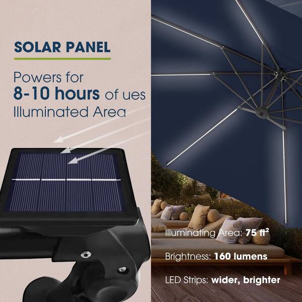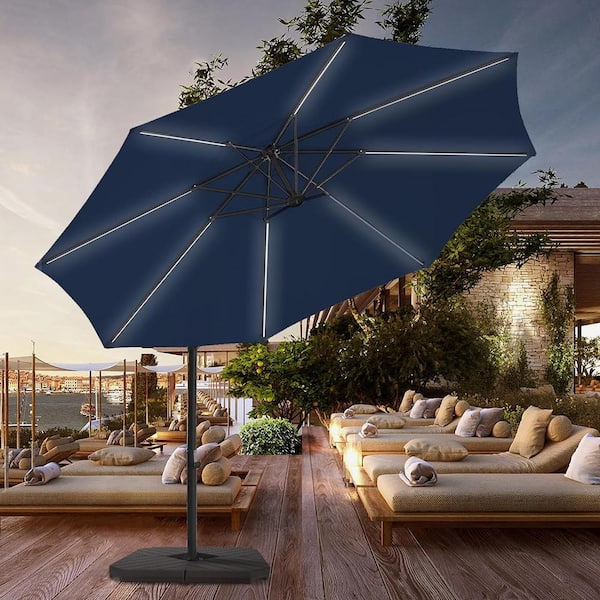 10ft. Aluminum Patio Offset Umbrella Outdoor Cantilever Umbrella, Fade Resistant Crank and Cross Base in Navy Blue