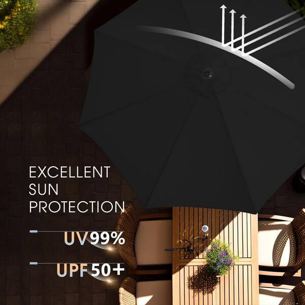 11 ft. Market Patio Umbrella with Push Button Tilt and Crank in Black