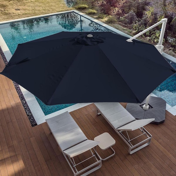 11ft. Aluminum Patio Offset Umbrella Outdoor Cantilever Umbrella, 360° Rotation Device And Cross Base in Navy Blue