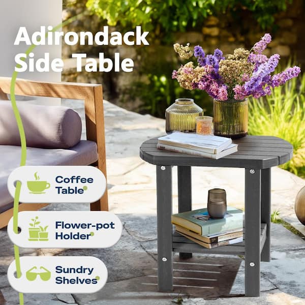 17 in. Grey 2-Tier Oval HDPE Outdoor Side Table