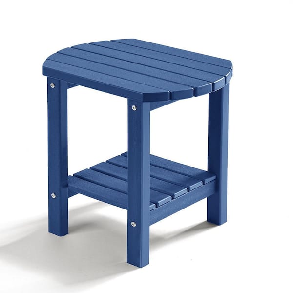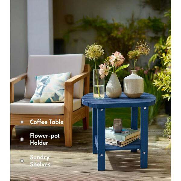 17 in. Navy Blue 2-Tier Oval HDPE Outdoor Side Table
