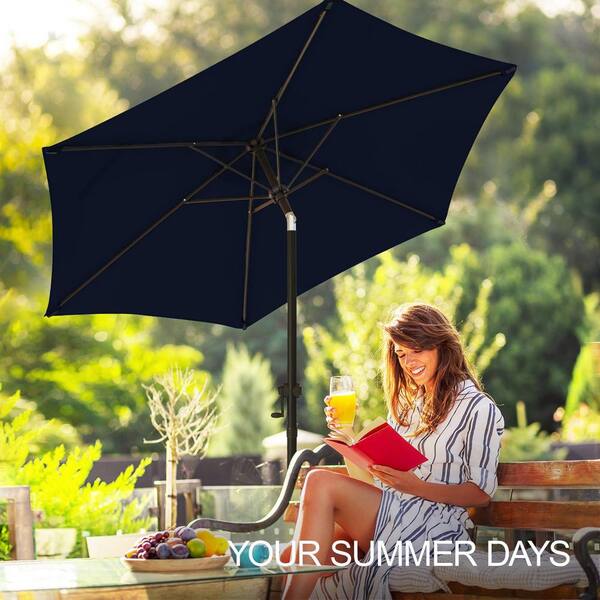 7.5 ft. Market Patio Umbrella with Base and Push Button Tilt in Navy Blue