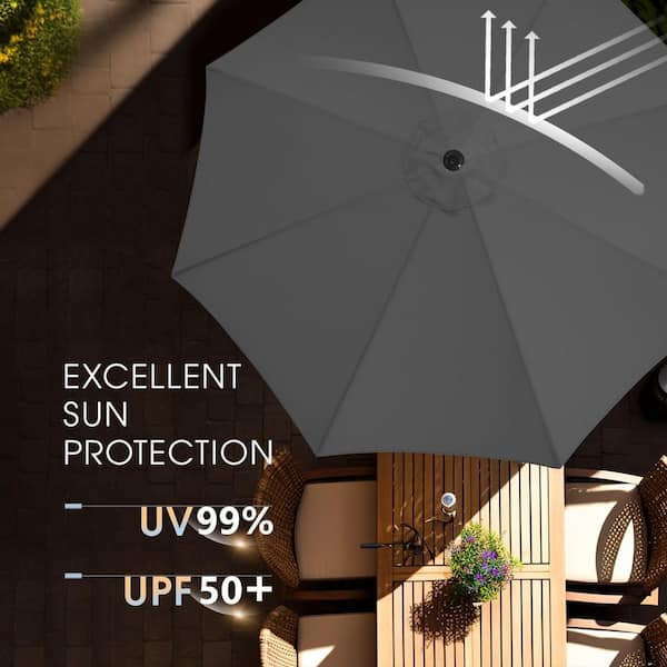 7.5 ft. Market Patio Umbrella with Push Button Tilt and Crank in Dark Grey