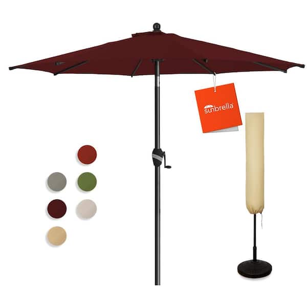 9 ft. Aluminum Market Umbrella Outdoor Patio Umbrella with Tilt Crank and Cover in Prune Sunbrella