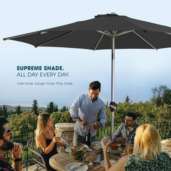 9 ft. Aluminum Outdoor Market Umbrella Patio Umbrella, 5-YEAR Fade-Resistant and Push Button Tilt in Carbon