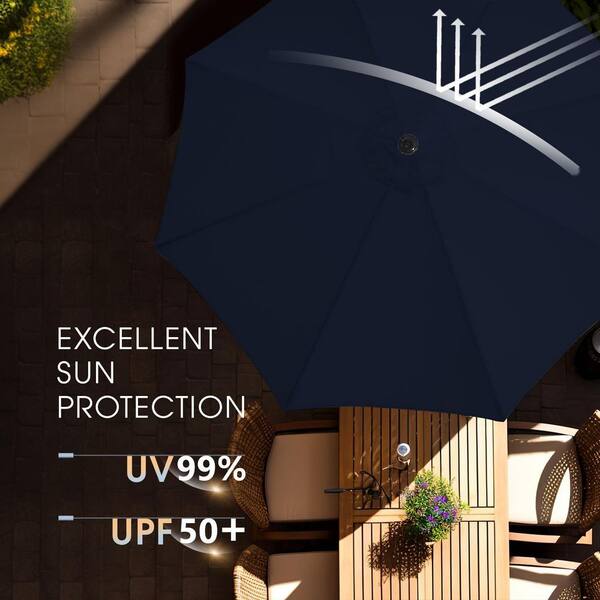 9 ft. Market Patio Umbrella with Push Button Tilt and Crank in Navy Blue