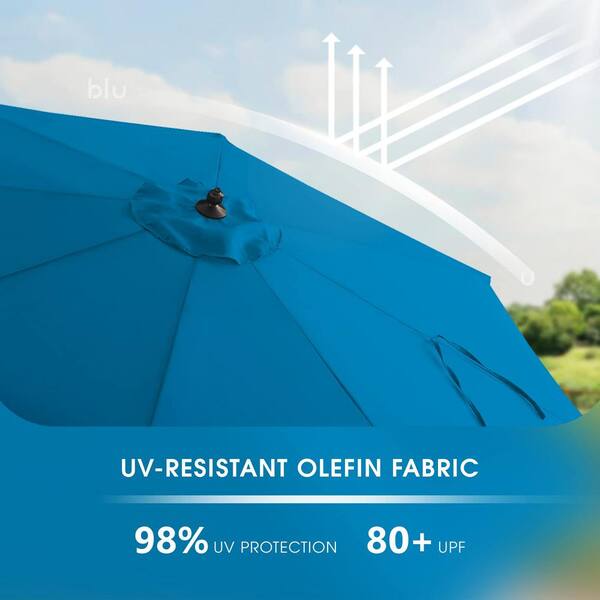 9 ft. Olefin Outdoor Market Umbrella Patio Umbrella, 8 Strudy Ribs and Push Button Tilt in Royal Blue