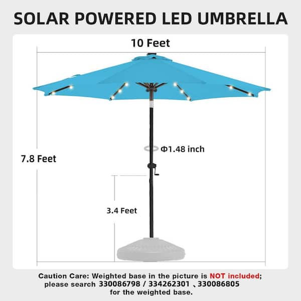 9 ft. Solar LED Lighted Market Patio Umbrella with Crank and Tilt in Sky Blue