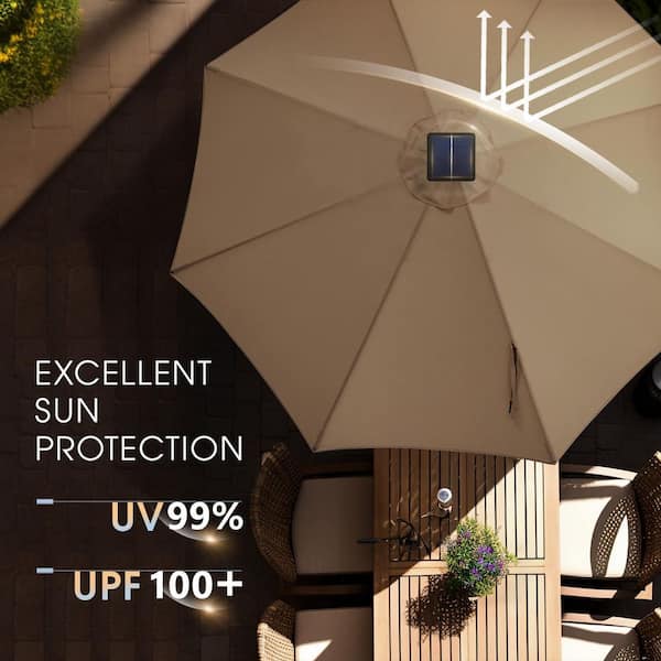 9 ft. Solar LED Lighted Market Patio Umbrella with Crank and Tilt in Tan