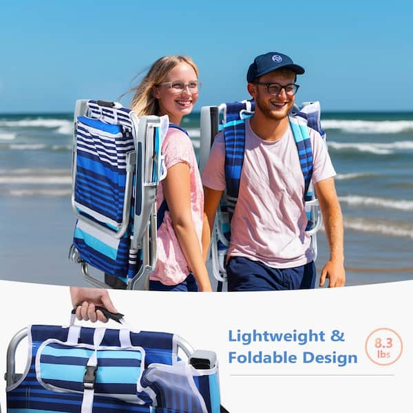 Striped Blue Aluminum Folding Adjustable Headrest Low Beach Chair(1-Pack)