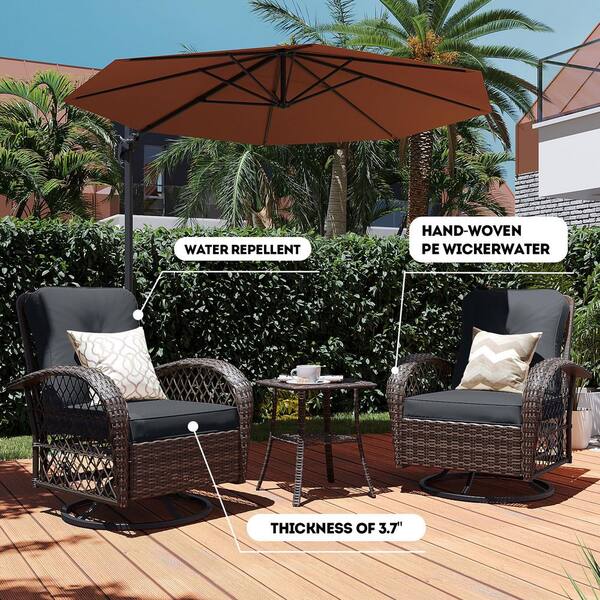 Patio watcher 3-Piece Brown Wicker 360° Patio Conversation Outdoor Rocking Chair Set with Dark Gray Cushions