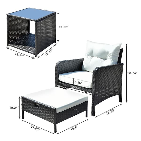 5-Pieces Wicker/Rattan Patio Conversation Seating Group with White Cushions (2-Person)