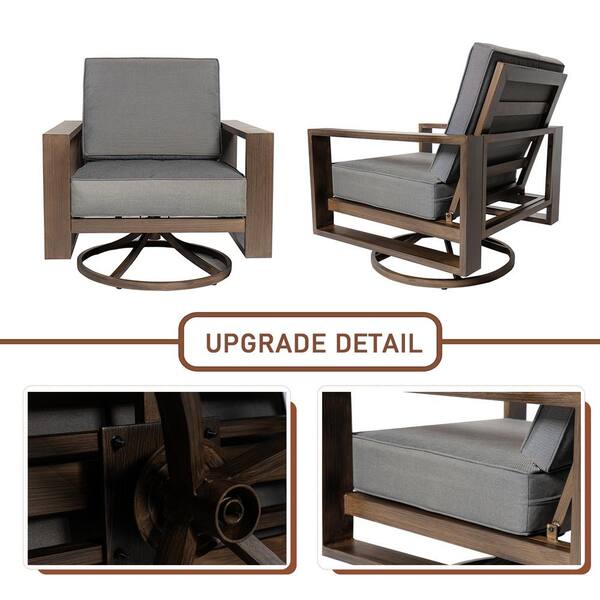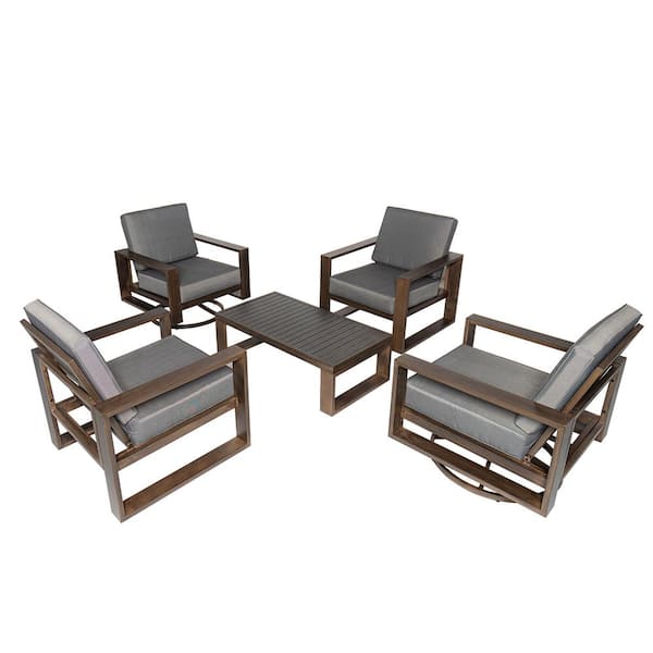 5-Piece Aluminum Outdoor Sectional Set Coffee Table, Armchair, with Gray 5.5 IN Cushions - 2-Swivel plus 2-Armchair