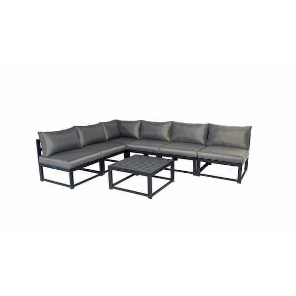 Outdoor Furniture Set, 7 Pieces Aluminum Sectional Sofa Set with Gray Cushion and Coffee Table - 1 Cornerplus5 Middle