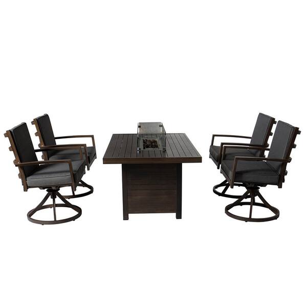 Patio Dining Set, 5-Piece Aluminum Outdoor Dining Set with Gray Cushion and Fire Pit Table - 4 Swivel Chair
