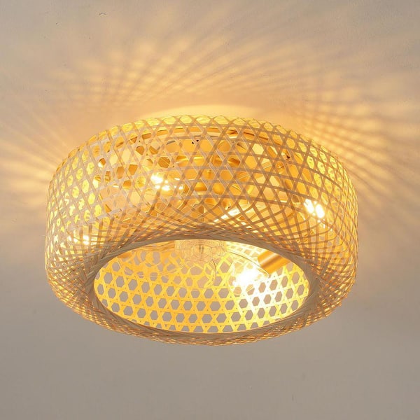 19.69 in. 4-Lights Indoor Gold Farmhouse Boho Rattan Caged Ceiling Fan with Remote Included No Bulbs