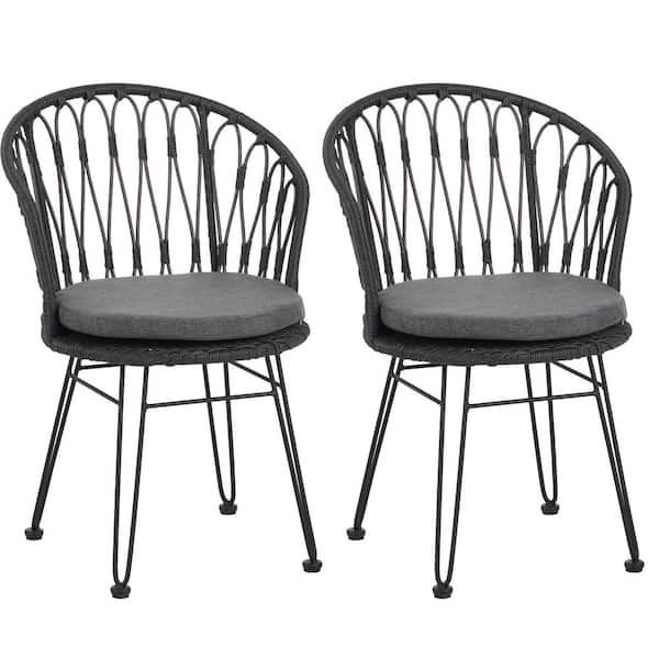 PE Wicker Outdoor Dining Chairs Patio Side Chair with Gray Cushions (2-Pack)