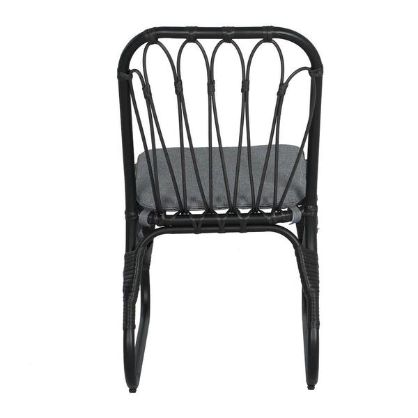 PE Wicker Outdoor Dining Chairs with Gray Washable Cushions (2-Pack)