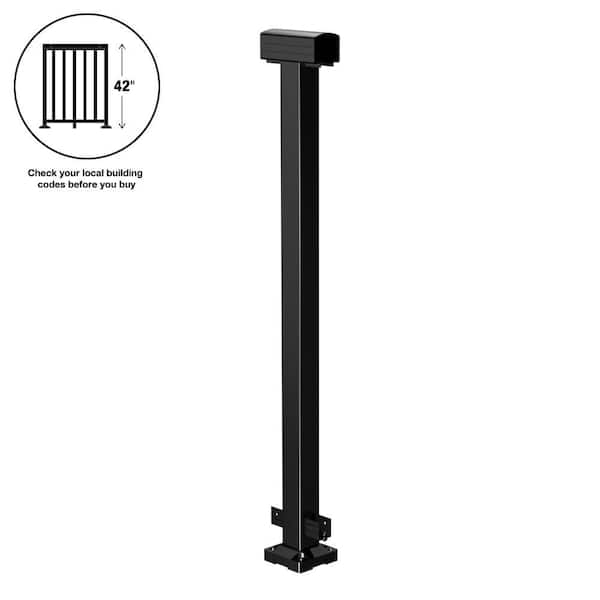 42 in. H x 4 in. W Black Aluminum Deck Railing Mid Post