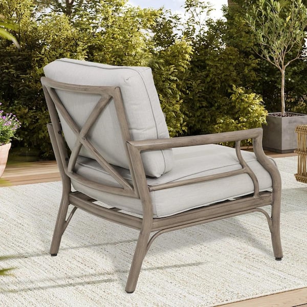 • Made with light mixed gray olefin cushions and aluminum frame.