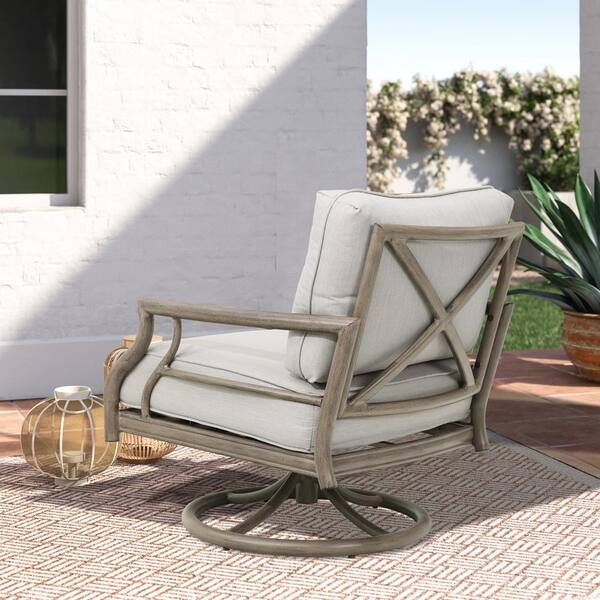 Lamando 4-Piece Aluminum Patio Outdoor Swivel Conversation Set with Light Mixed Gray Cushions Loveseat