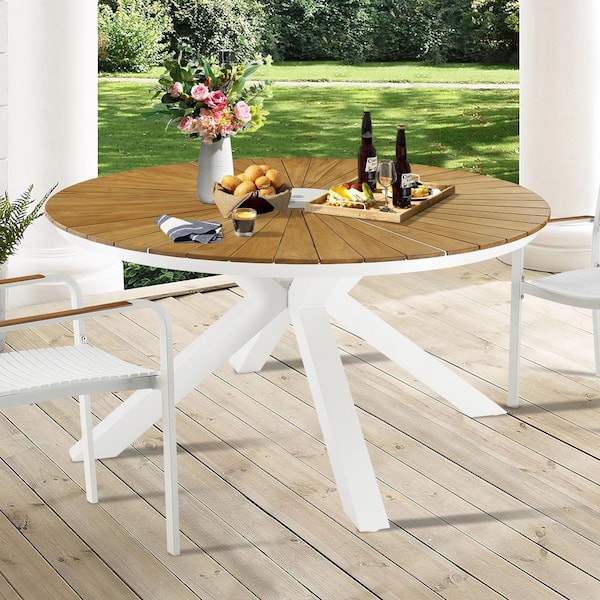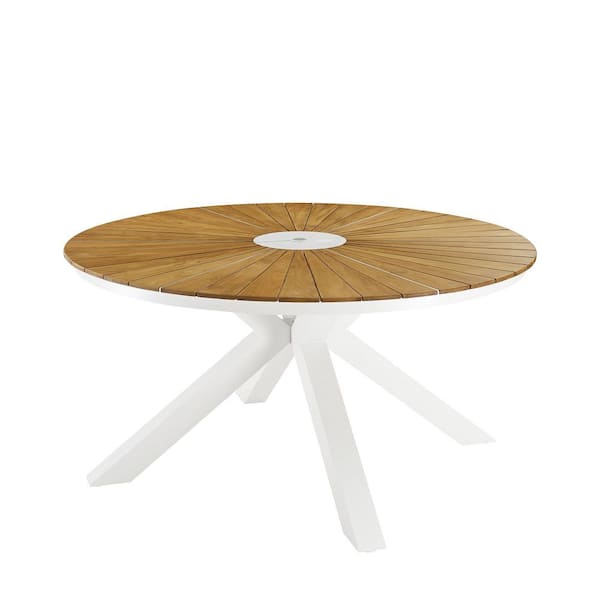 NUOVA White Aluminum Outdoor Dining Table with Teak Tabletop